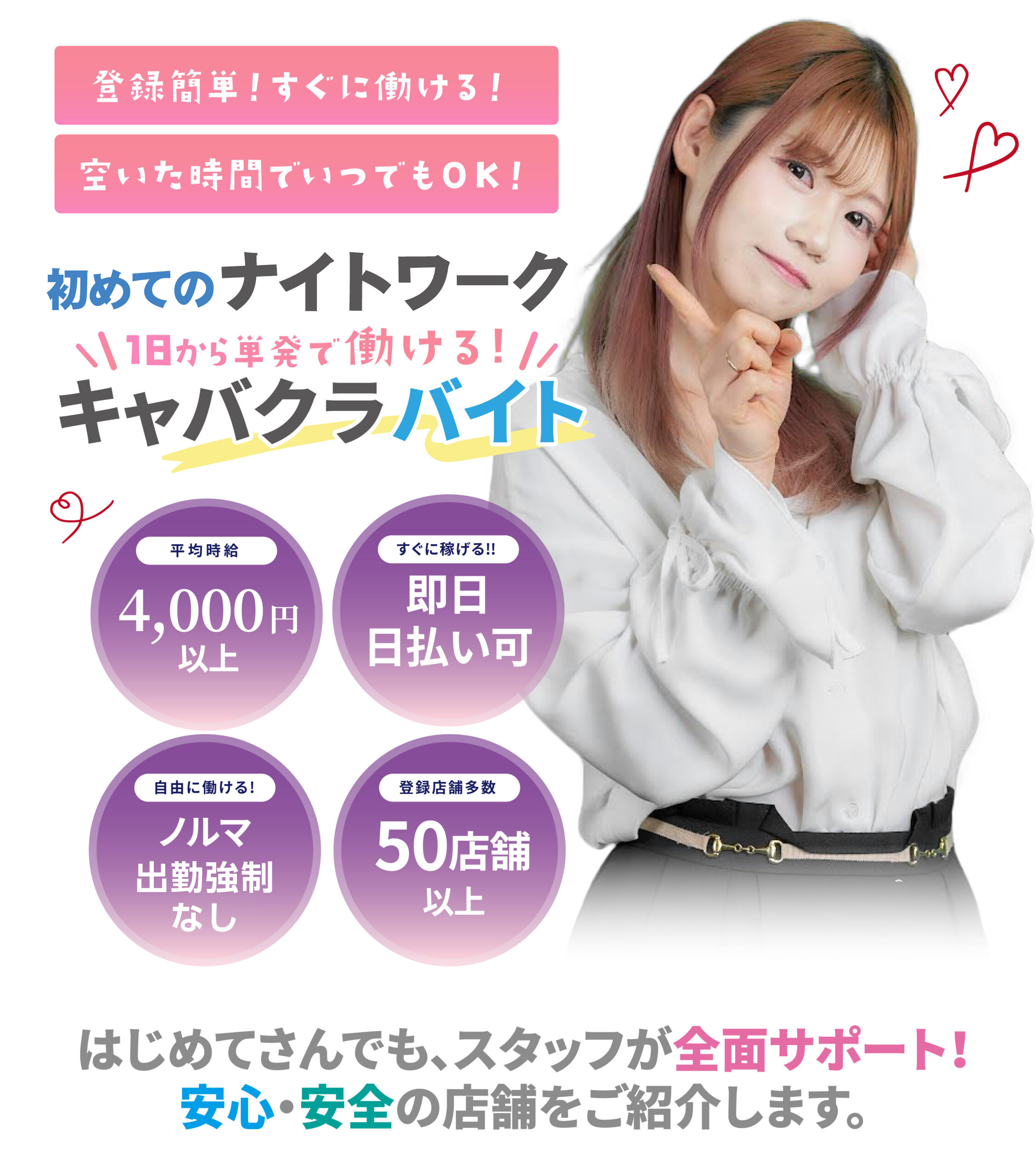 ナイトワークを中心に女の子はキャバクラ・ラウンジなど、男の子にはボーイ・メンズスタッフをご紹介しております。